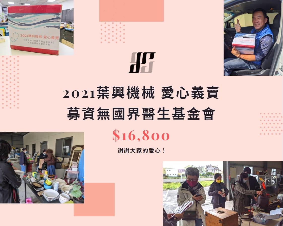 這一年,葉興機械舉辦了第一屆的愛心義賣活動,願將所得捐贈無國界醫生基金會,為脆弱國家的防疫、醫療盡一份心力。